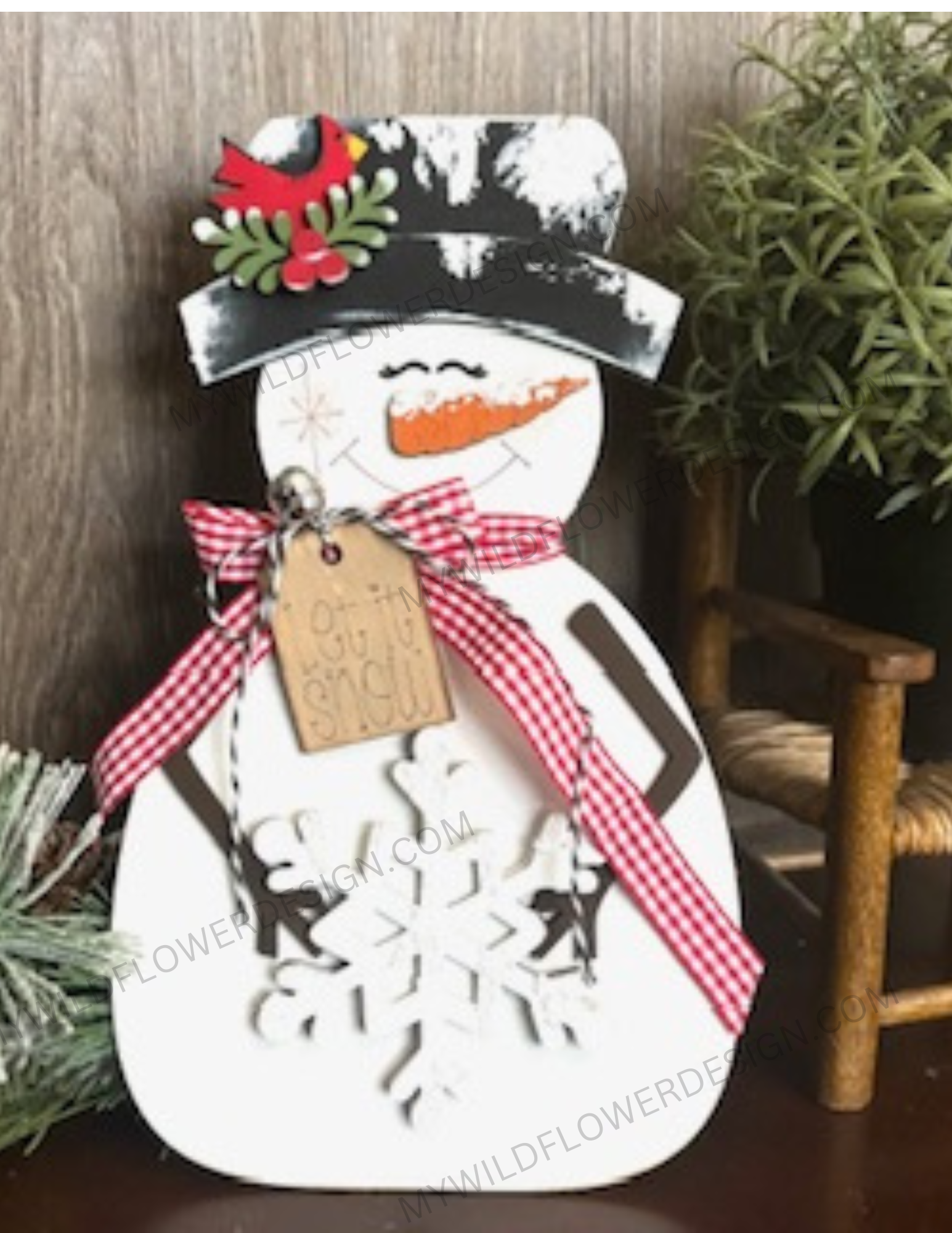Our Snowman Shelf Sitter is a beautiful piece to add to your holiday and winter decor! This wood piece is beautifully painted and embellished with just the right amount of sparkle!